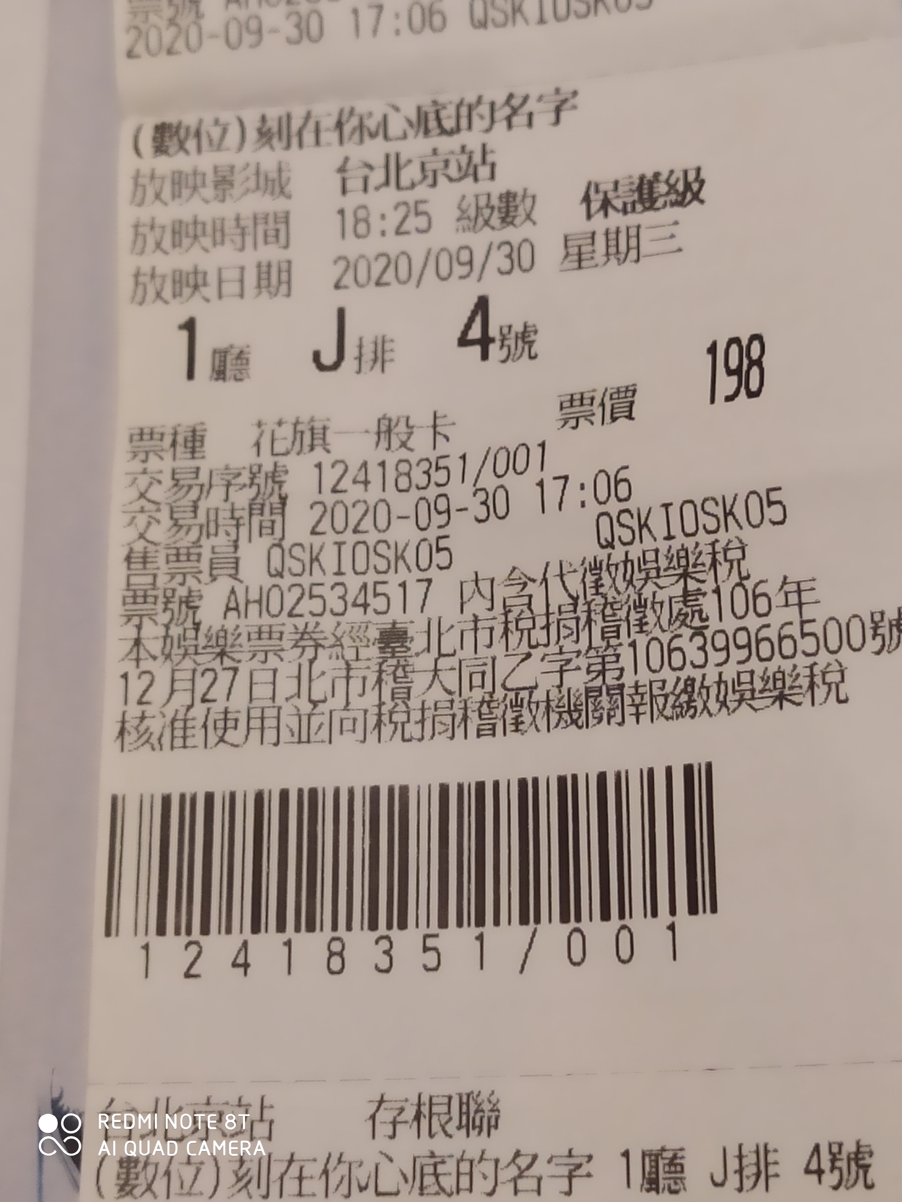今天去看刻在你心底的名字,在西門町捷運站斗大的廣告,讓平常不大看電影的我,覺得應該不錯,就來看囉。好多人喔,坐在最後排。非常好看喔!