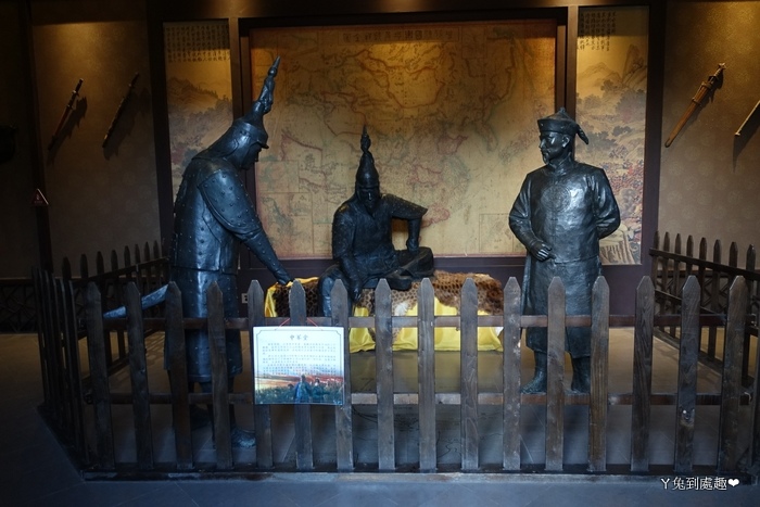 中間三個銅像,威坐正中指點江山的就是清太祖努爾哈赤