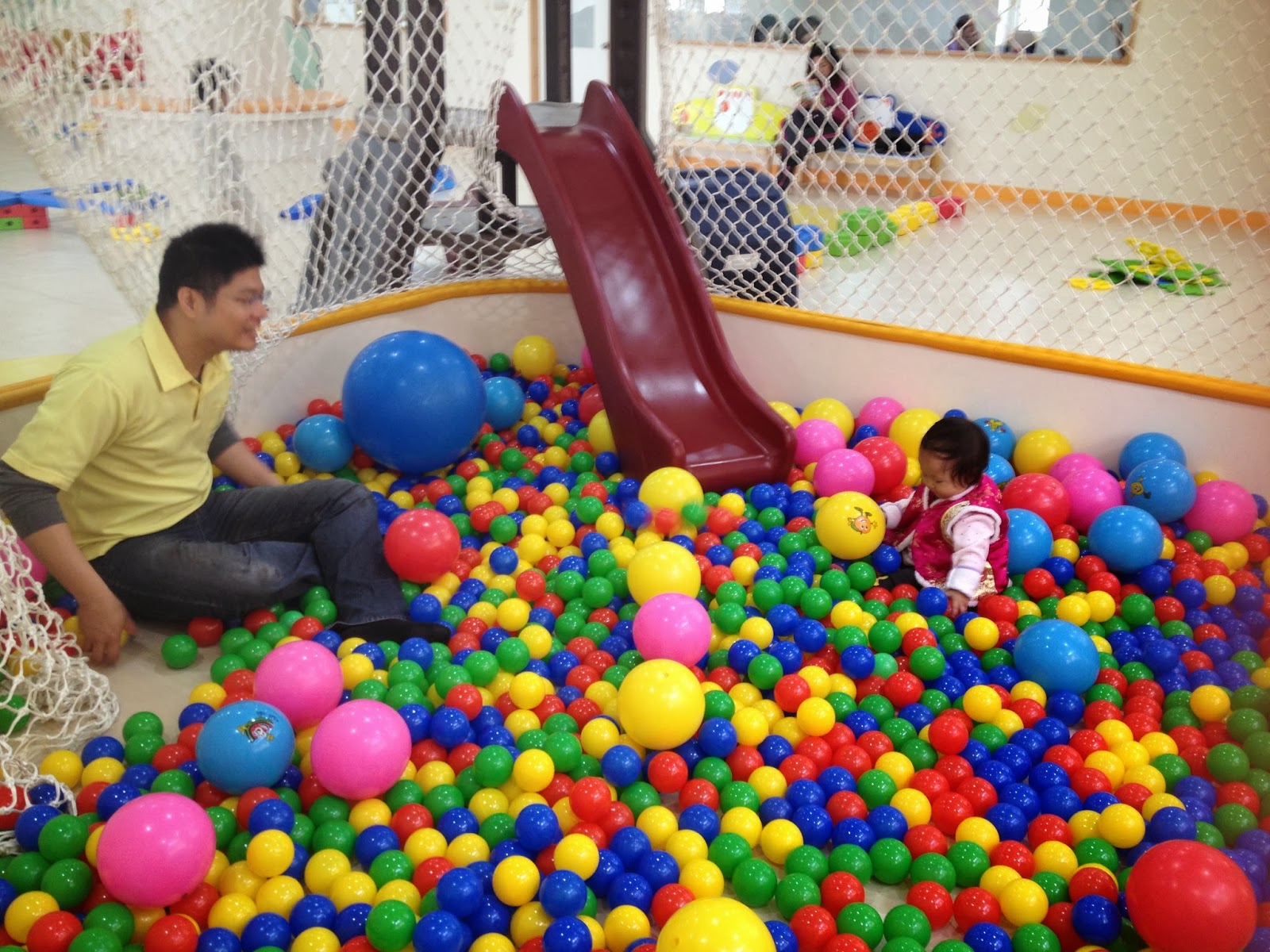 1.球池:令人驚艷的球池,大的小的全都很鮮艷,外頭還圍起安全護網。
