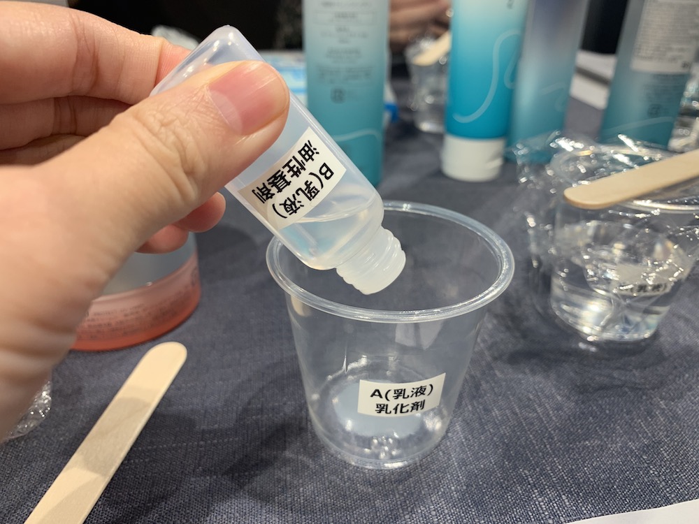 日本研發團隊特別安排專屬DIY保養品體驗,邀請大家一起動手作,第一次自己製作原料,感受很特別。