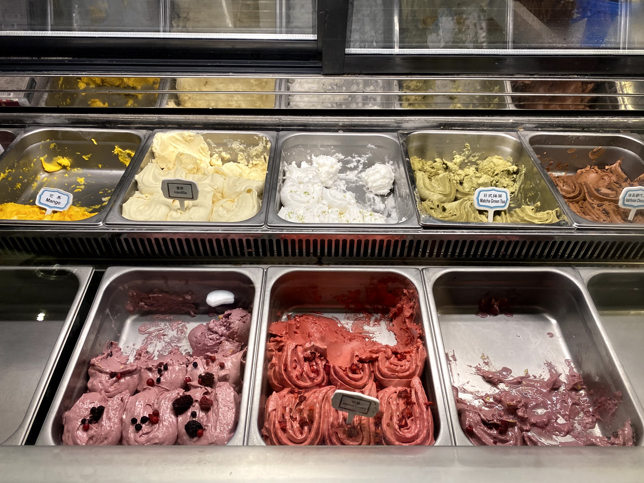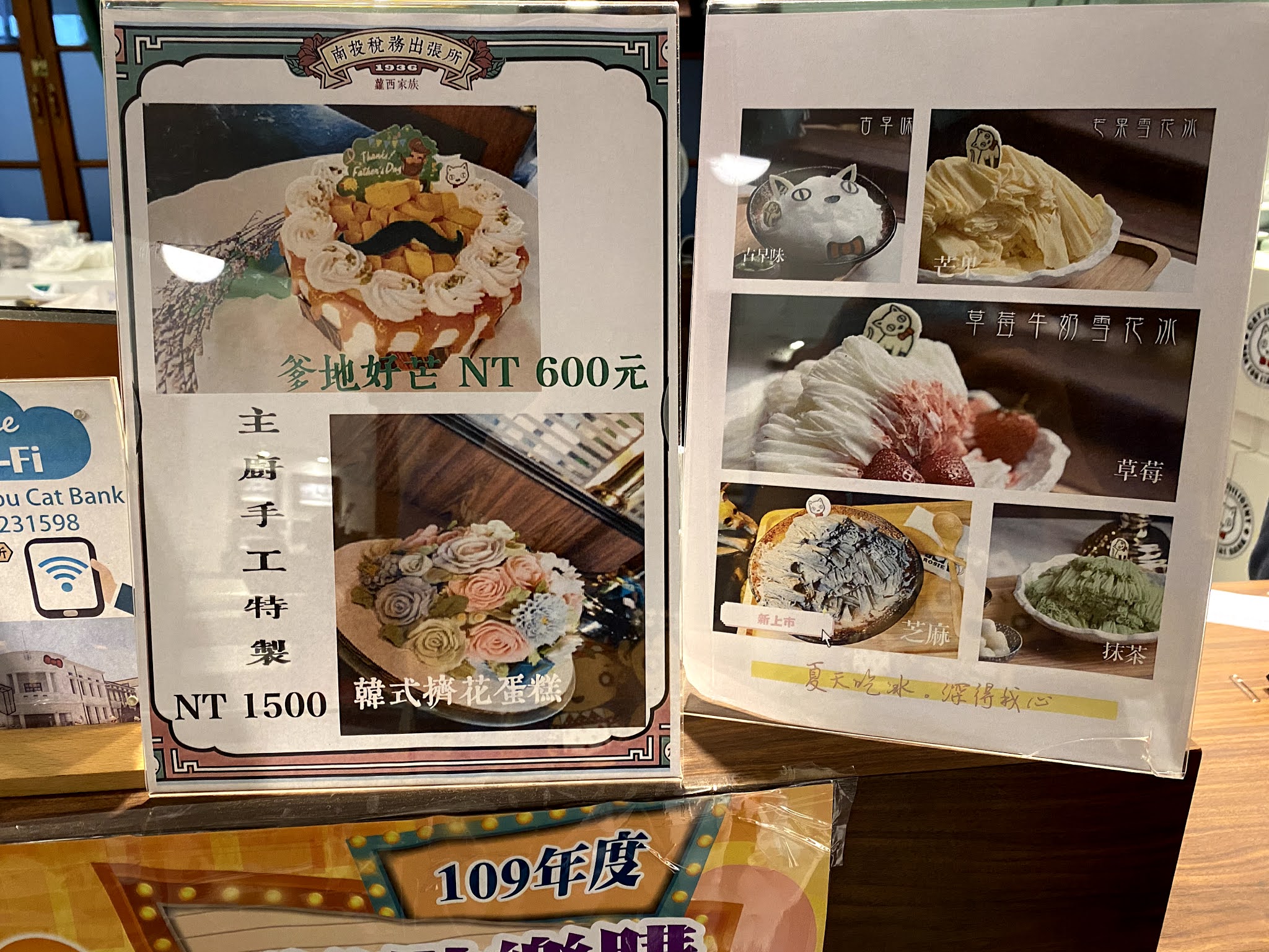 我們是在禮拜天晚上7:20左右抵達,人潮已散去,非常寧靜,可以一邊愜意地聊天,一邊聽著從留聲機造型的喇叭裡播出來的音樂,頗有氣氛。餐點方面,價位還算合理,因為正餐已經吃飽才來,我們只點了冰品,芒果牛奶雪花冰很不錯。冰棒的價位是55~60元左右,雪花冰的價位大約是100元,適合久坐聊天或閒晃。關於蘿西廚房的最後點餐時間,可以參考文章尾端的重要資訊欄,但如果只是要吃蘿西廚房外面的冰品,似乎超過晚上七點半仍然可以點。