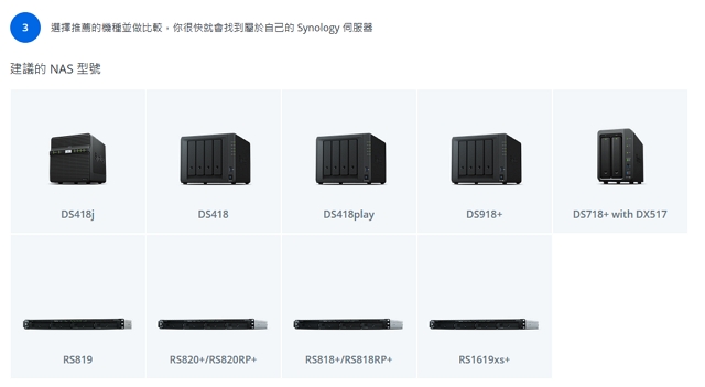 Step3.這個步驟主要是群暉提供你相關NAS的比較,有需要就自行點選囉