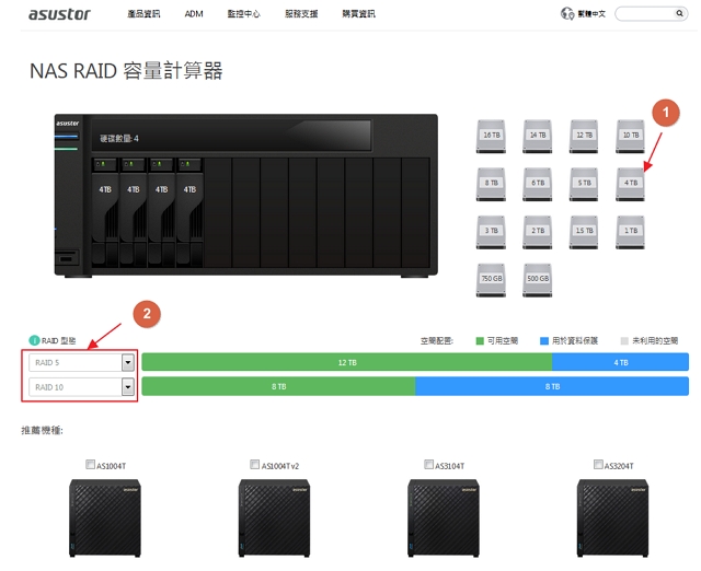 Step1.連上華芸網站 > https://www.asustor.com/zh-tw/service/raid_calculator