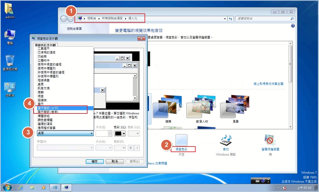 順帶一提如何調整桌面圖示的「水平及垂直間距」