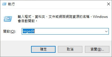 Step1.使用 WIN+R > 執行 > regedit (修改登錄檔前務必先備份)