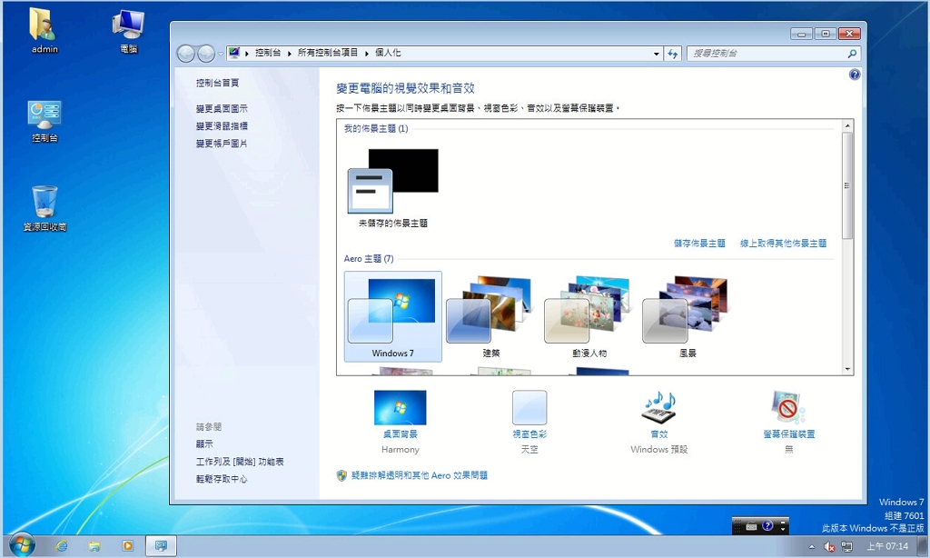 桌面按右鍵 > 個人化 > 視窗色彩 (或依照下圖從控制台找到個人化)