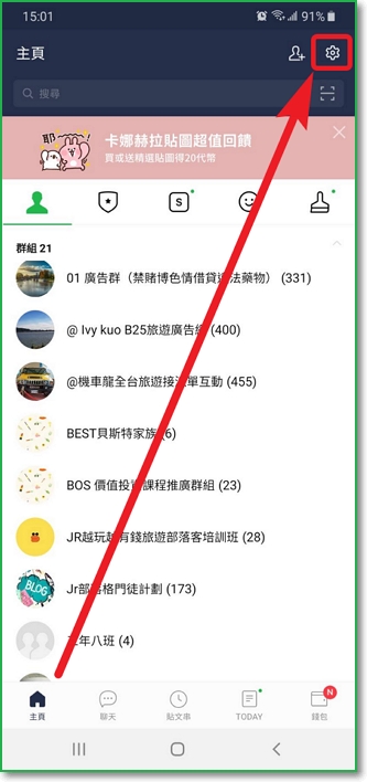 開啟 Line「主頁」 ➤ 「設定」