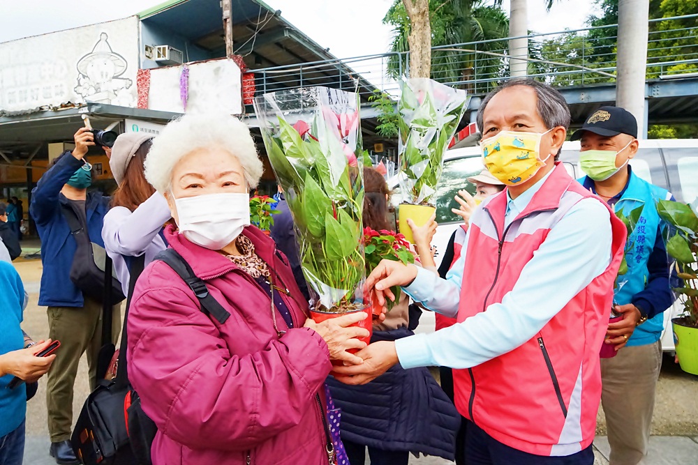 開展當日(12/25)埔里鎮長也親臨現場頒贈火鶴花給現場的民眾,大家一拿到花就心花開、笑容都顯現在臉上呢