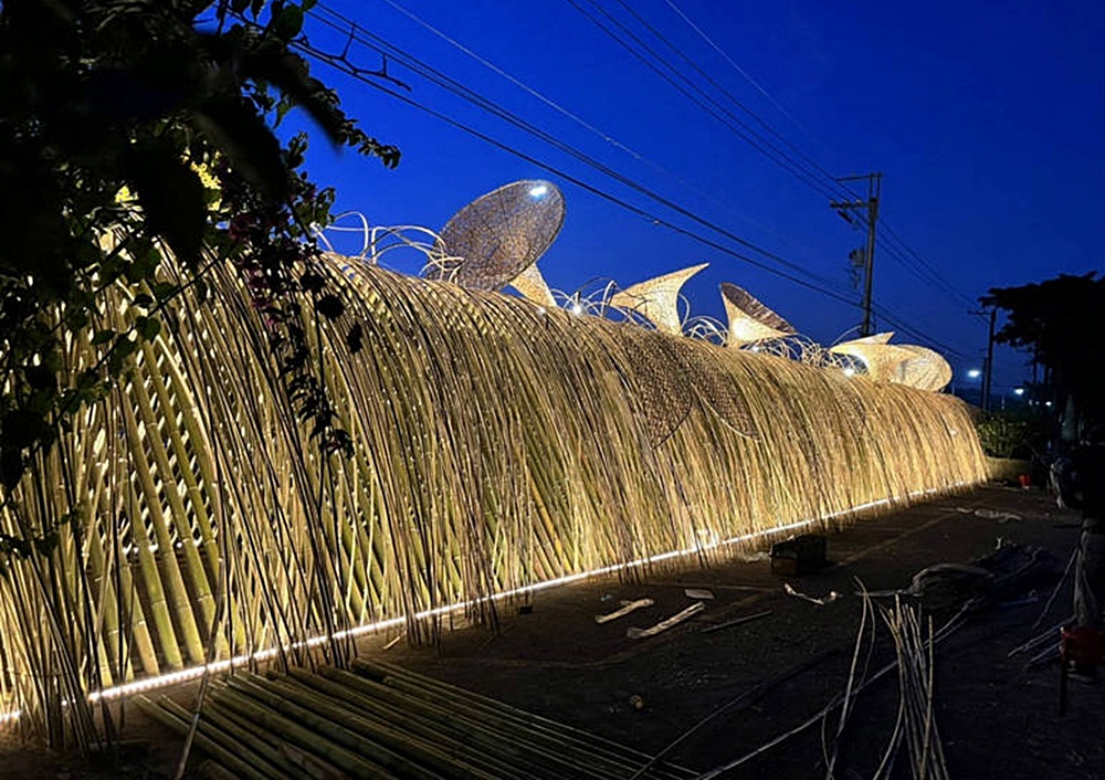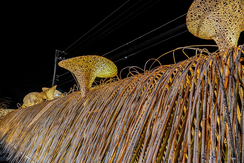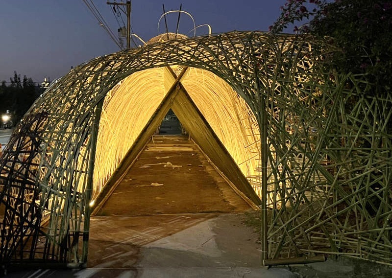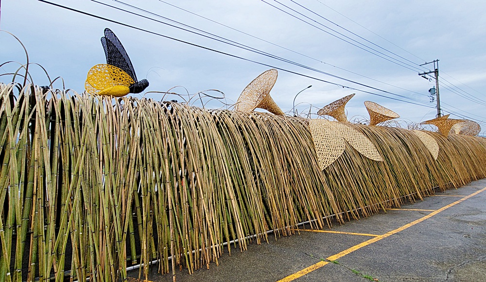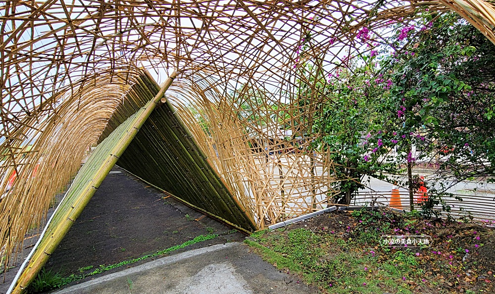 入口處有著徐暋盛老師以埔里蝴蝶翩翩飛舞的設計理念來設計編製成這座地景,竹藝地景隧道不管是白天或夜晚點燈後來拍都有不同的氣氛唷!