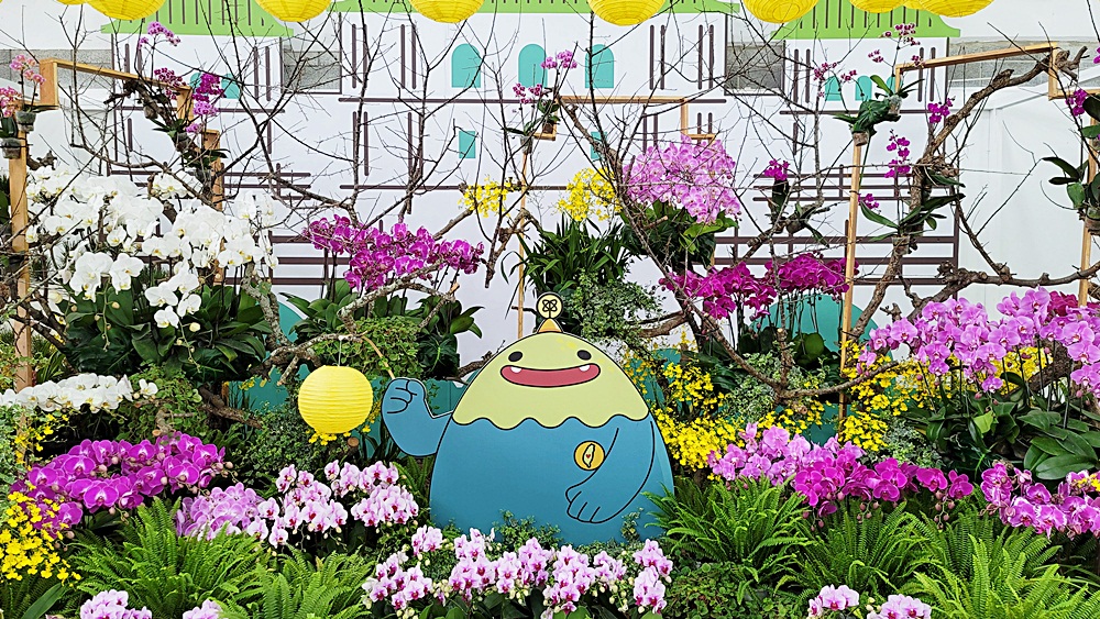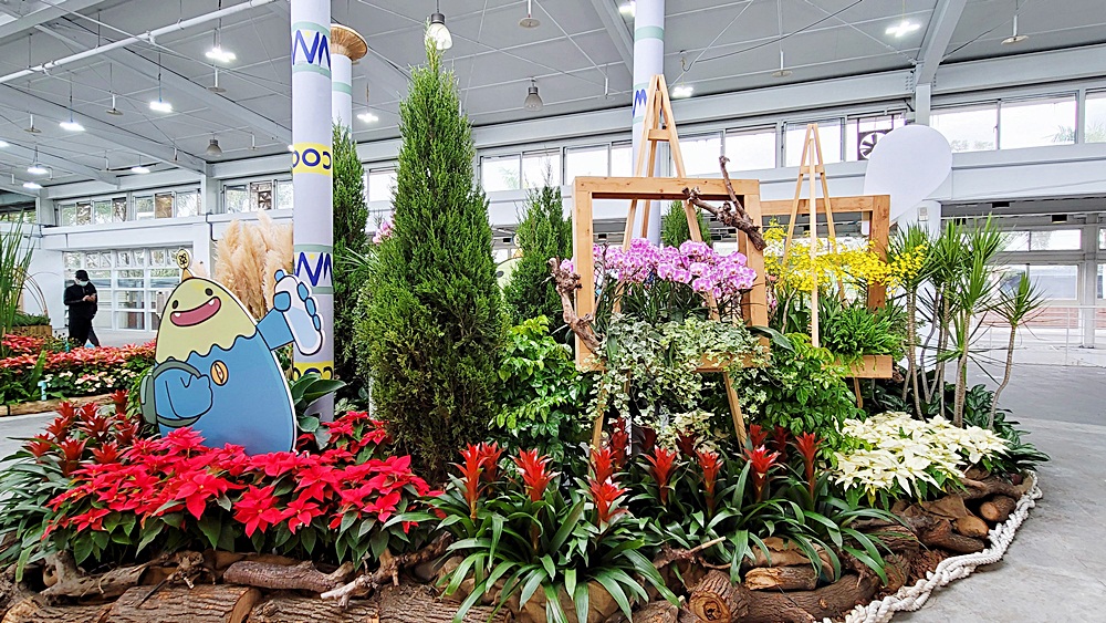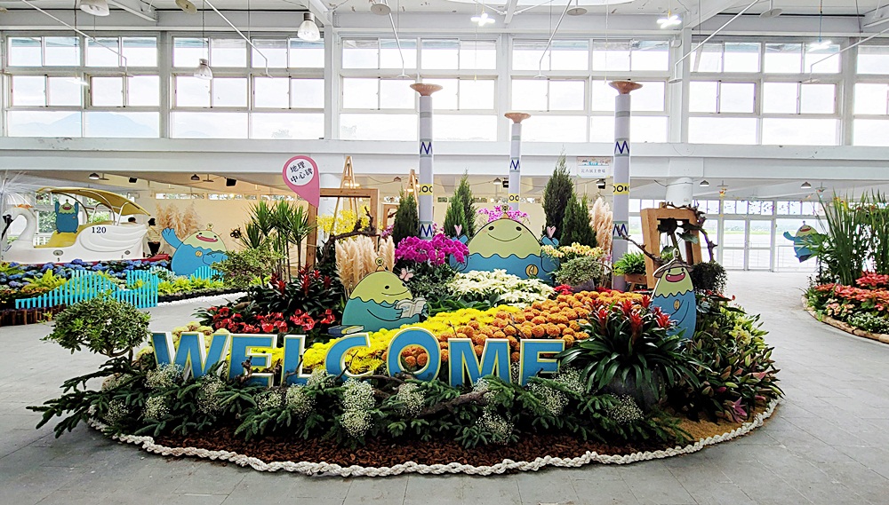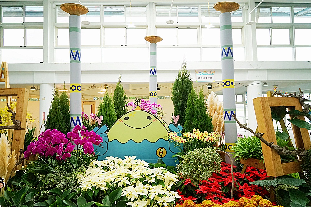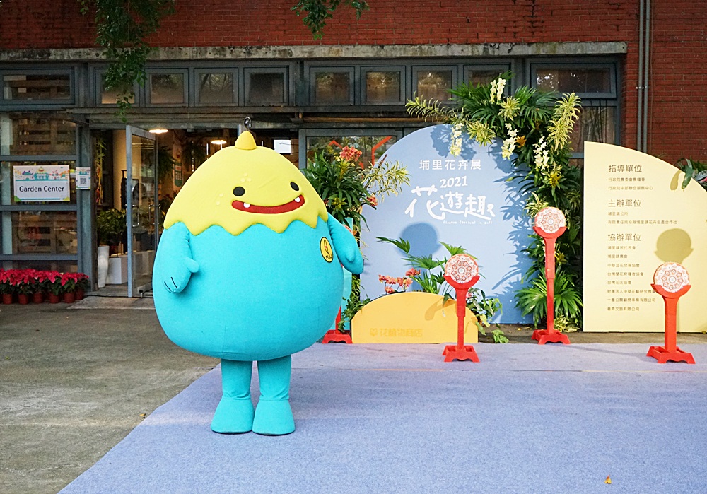 小凉跟大家不一樣的點就是,大家應該都會從一樓開始看花再往二樓去,我就跟人家不一樣的隨興顛倒,我比較愛先進入主題XD 一進入花卉現場會先看到這一區,以埔里代言人噗哩跟花藝的結合,也是不少大家必拍的打卡點…