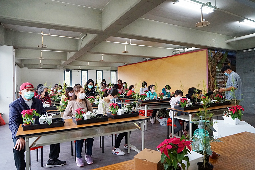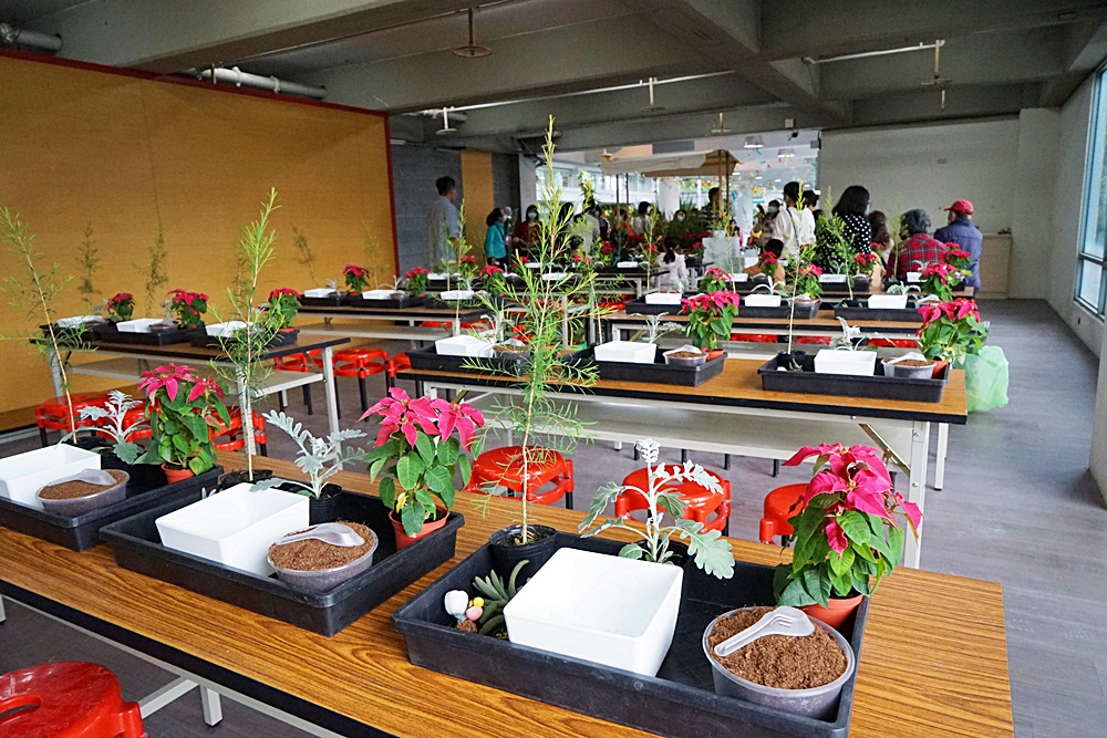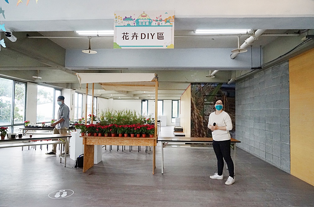 花卉DIY區,報名請在一樓服務台唷! 均收工本費$50,110/12/31~111/01/01~01/02早上10:30、下午14:00(每場30人),記得先去預約、時間到再來DIY,很適合親子的活動喔!
