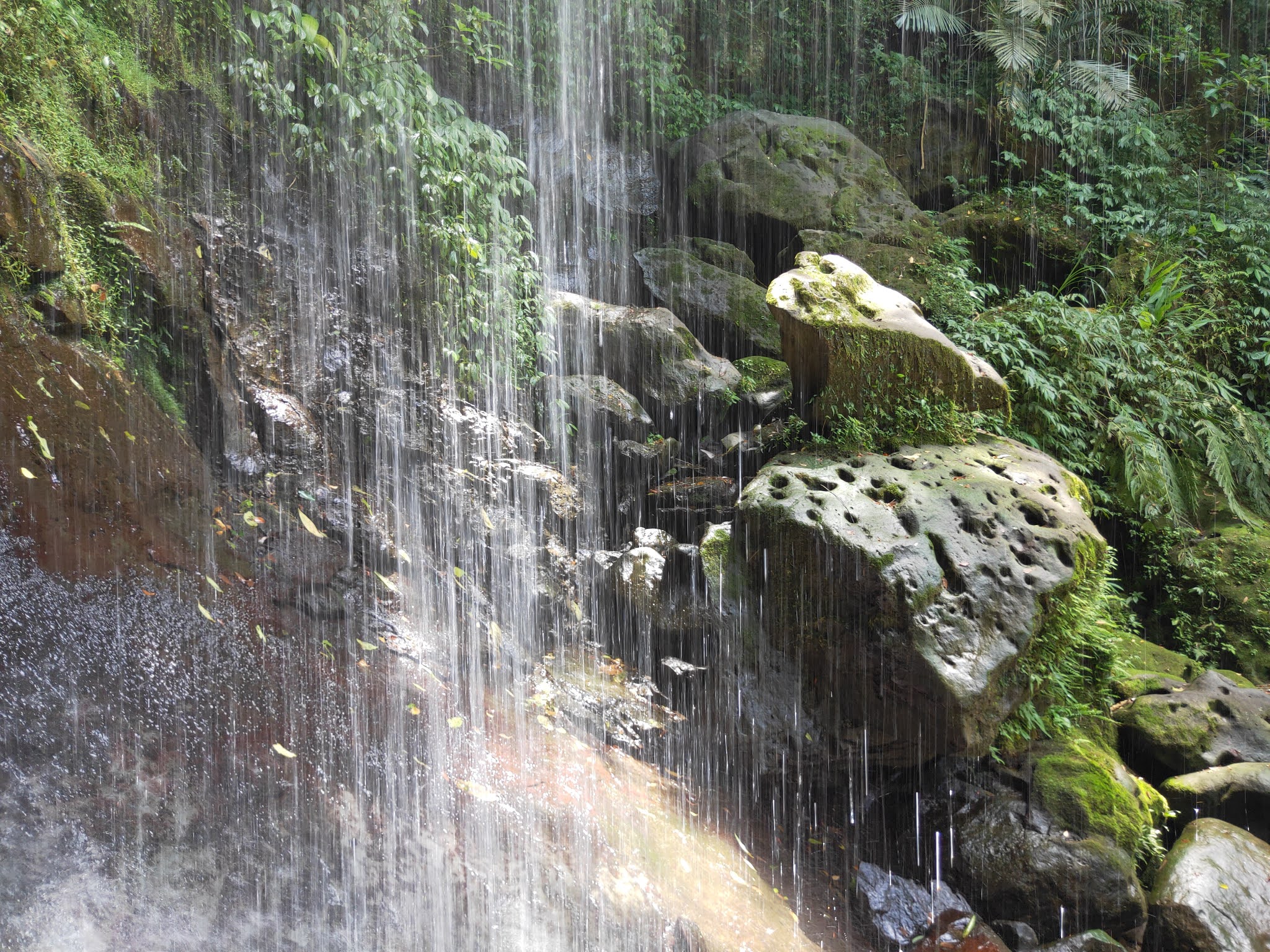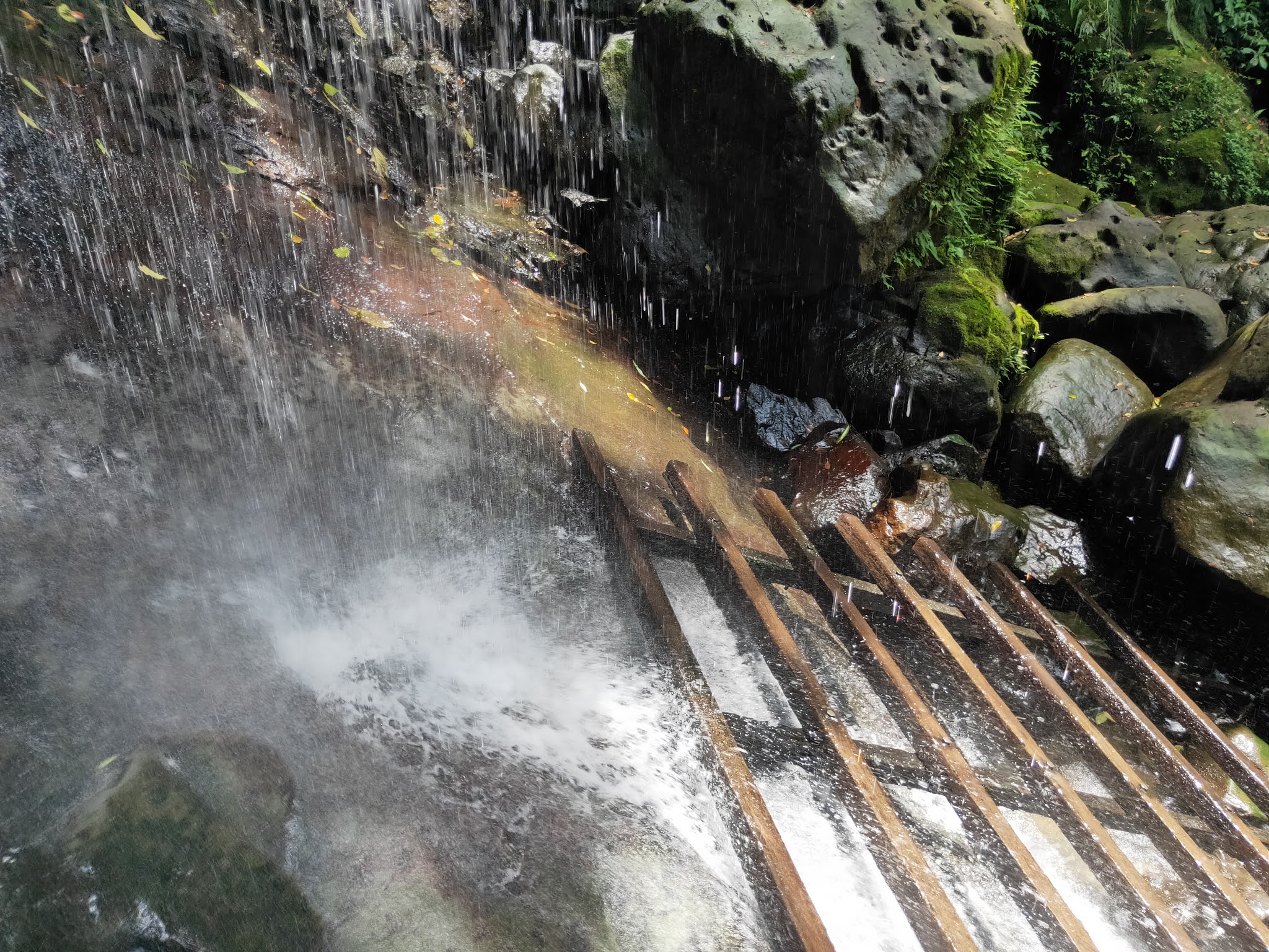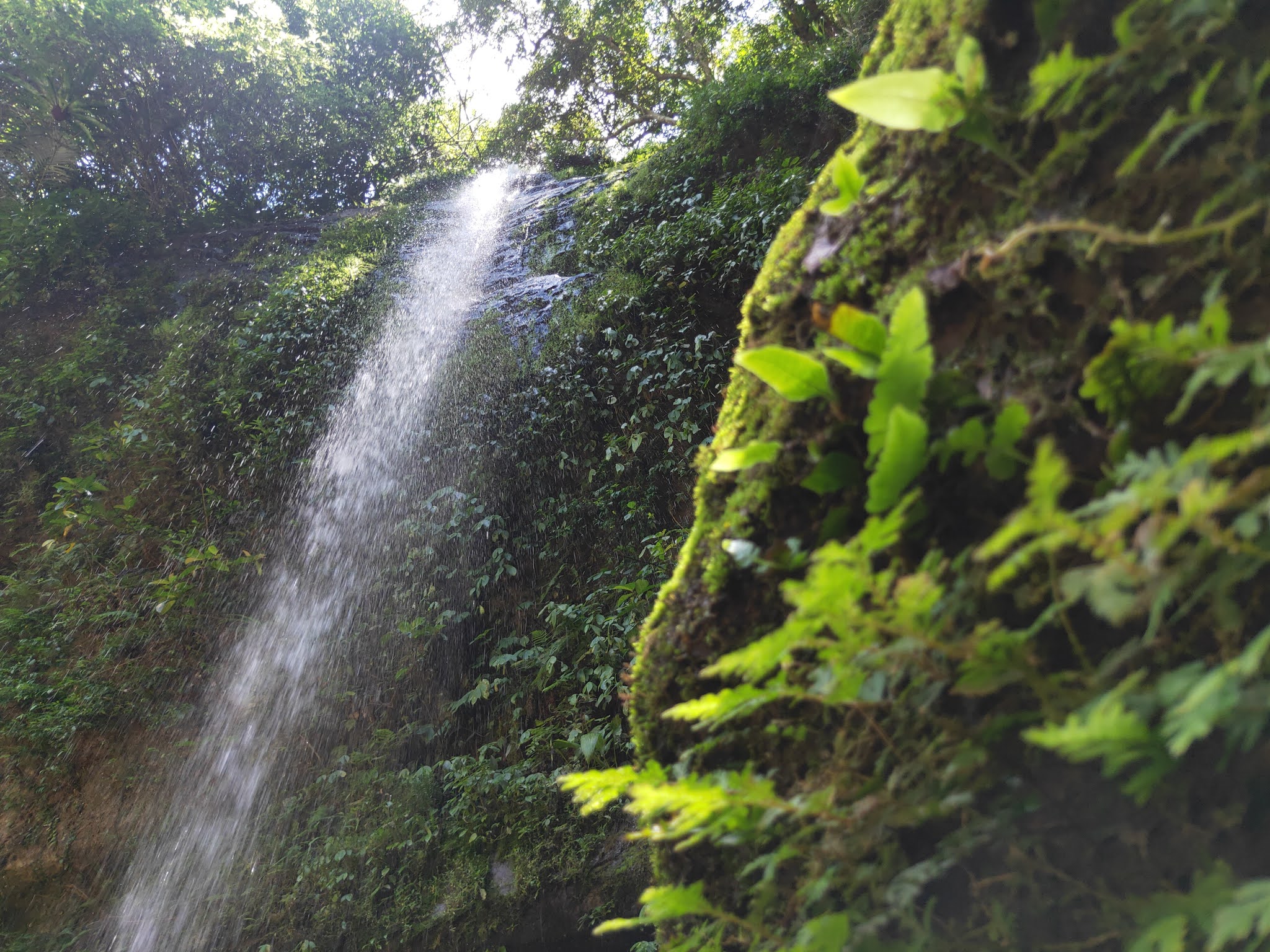 從入口到瀑布真的只要短短的10多分鐘,一路都是林蔭沒有太多地方會被曬到,過了一個小巧的水泥橋後,就可以看見瀑布就在前方不遠處了。