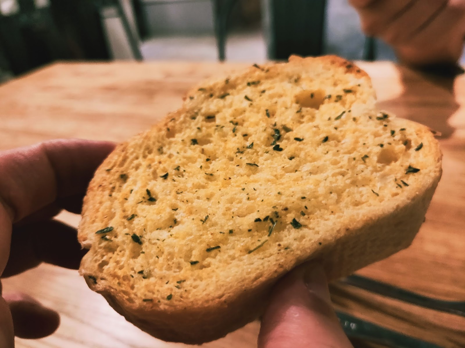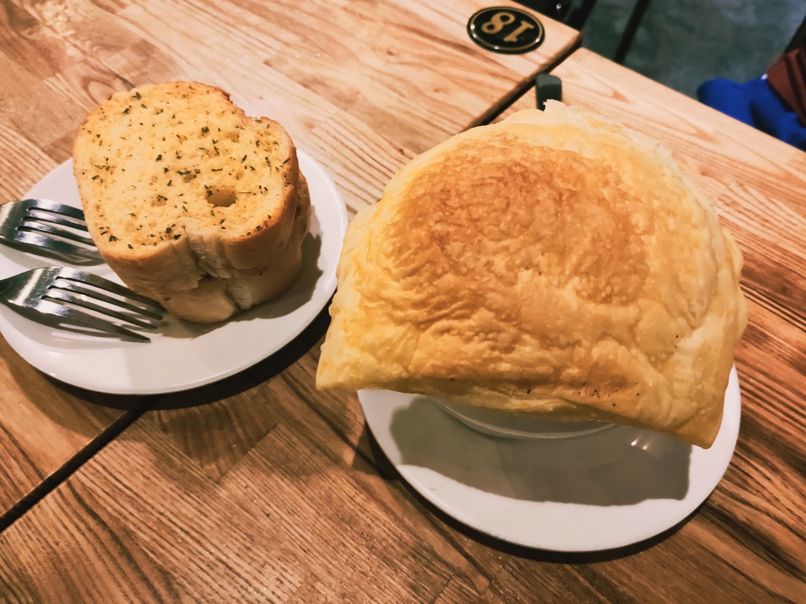 黑牛的牛排吃起來有點不同,不像有些連鎖牛排般的那樣的軟嫩,店內180元的6盎司沙朗牛排,吃起來是較具有嚼勁的牛肉,讓人有種真正在吃牛肉的感覺,正如店家所強調的,他們的肉品絕非組合肉,鐵板麵則是使用像烏龍麵般粗的白麵,酥皮濃湯也具相當的濃度,但料就少了一些些,額外點的香蒜麵包,口感和蒜味香氣都很不錯,整體的用餐感覺算是很不錯,而份量又具有飽足感的囉!!