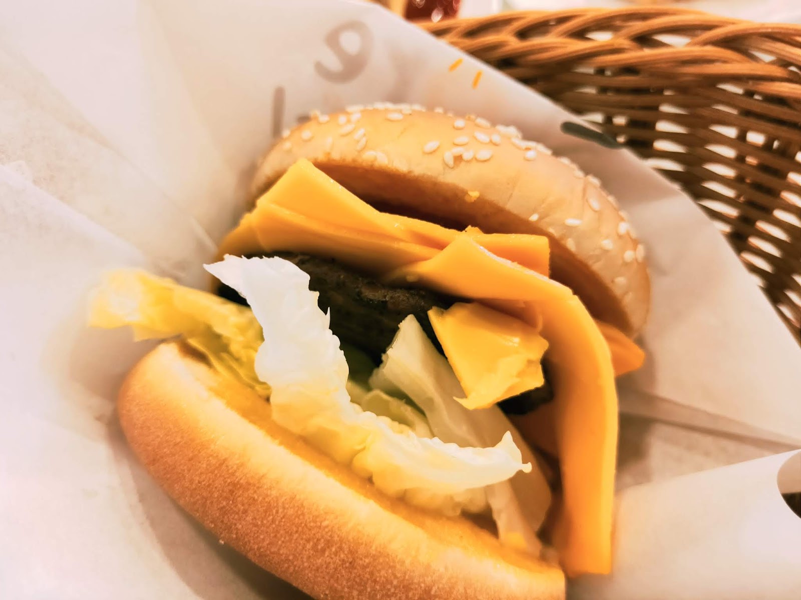 經典牛肉吐司堡,單價算是蠻高的,單點一份$75,但真的有給它很迷你的感覺,牛肉排有點營養不良的薄,起司沒有因為受熱而牽絲,漢堡皮則是沒有加熱夠,說是一個沒有"溫度"的漢堡都不為過。