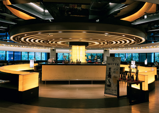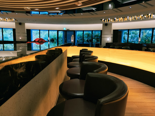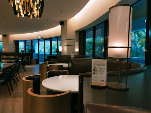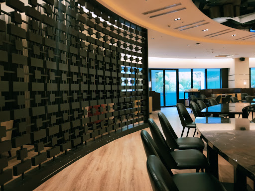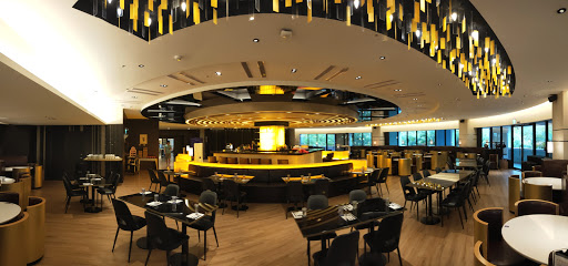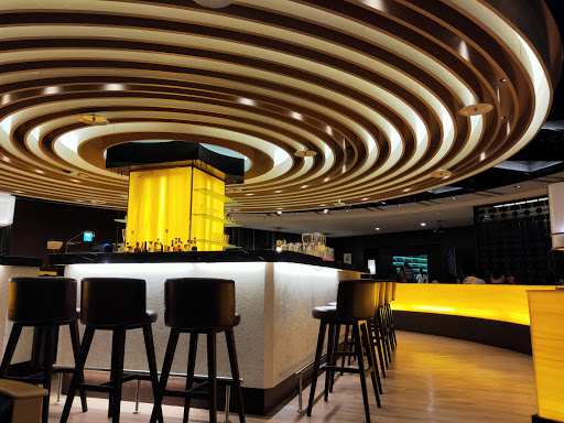 晚餐所在的Cham Cham Bar是位在趣淘2樓,從下午5點開始營業,一直提供餐點、酒水到晚間9:30(週日到週五)或11:30(週六),我們總共在這裡用餐了2回,Cham Cham Bar是個圓形的用餐環境,另一半說:怎麼不會轉,若會轉,那視野就更棒了,我心想,才2樓而已,哪來的視野啊~~,吧檯就在圓心,所有的桌椅都以這中心點向外放射出去,整體的裝潢風格走的是都會時尚風,運用大量的黑與金,再搭配上黃色燈光,成功的營造出貴氣的時髦感,除了2人、4人等座位區外,還配有大型的8人座的半包廂空間。