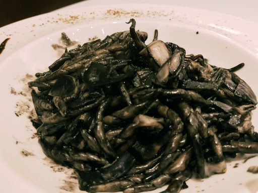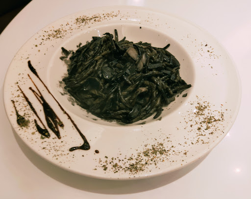 墨攻花枝特飛麵,先要來說說啥是特飛麵,特飛麵(Trofie)是捲得很密、魚雷型的短麵,長約4公分,寬0.5公分,它源自於利古里亞地區,這款麵衣基本上是應該搭配熱那亞青醬來烹煮,而今天要來嚐嚐用墨魚烹煮的特飛麵的滋味囉,老實說,上桌時的賣相並不是很好,沒關係,味道比較重要,嗯...,墨魚汁似乎沒有處理的很好,有些腥味,而且特飛麵沒能吸收醬汁,整體來說是一道無滋無味的料理。