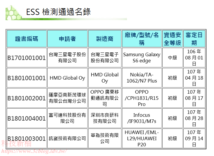 近期各國因資安疑慮,紛紛跟進拒絕使用華為裝置,台灣 NCC 表示已經禁用了中國製的設備,同時指出華為的 P20 已通過 NCC 的資安初級認證,但是如果有疑慮,那麼會建議不要購買。後來筆者終於找到了NCC資安初級認證的清單,發現到目前為止,通過的裝置只有 5 款,其中華為 P20 是最新的一款,其他國產品牌都不見在清單中。