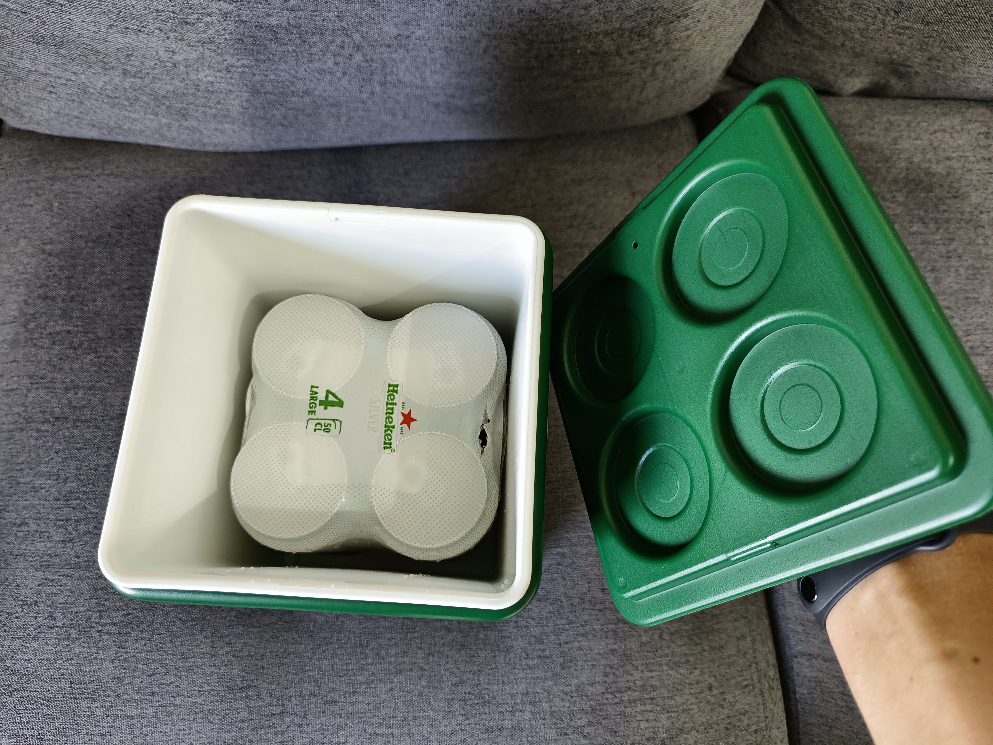 包裝上有提到這是專為海尼根設計,330ml可以剛好放8罐,500ml 4罐下去就沒什麼空間了