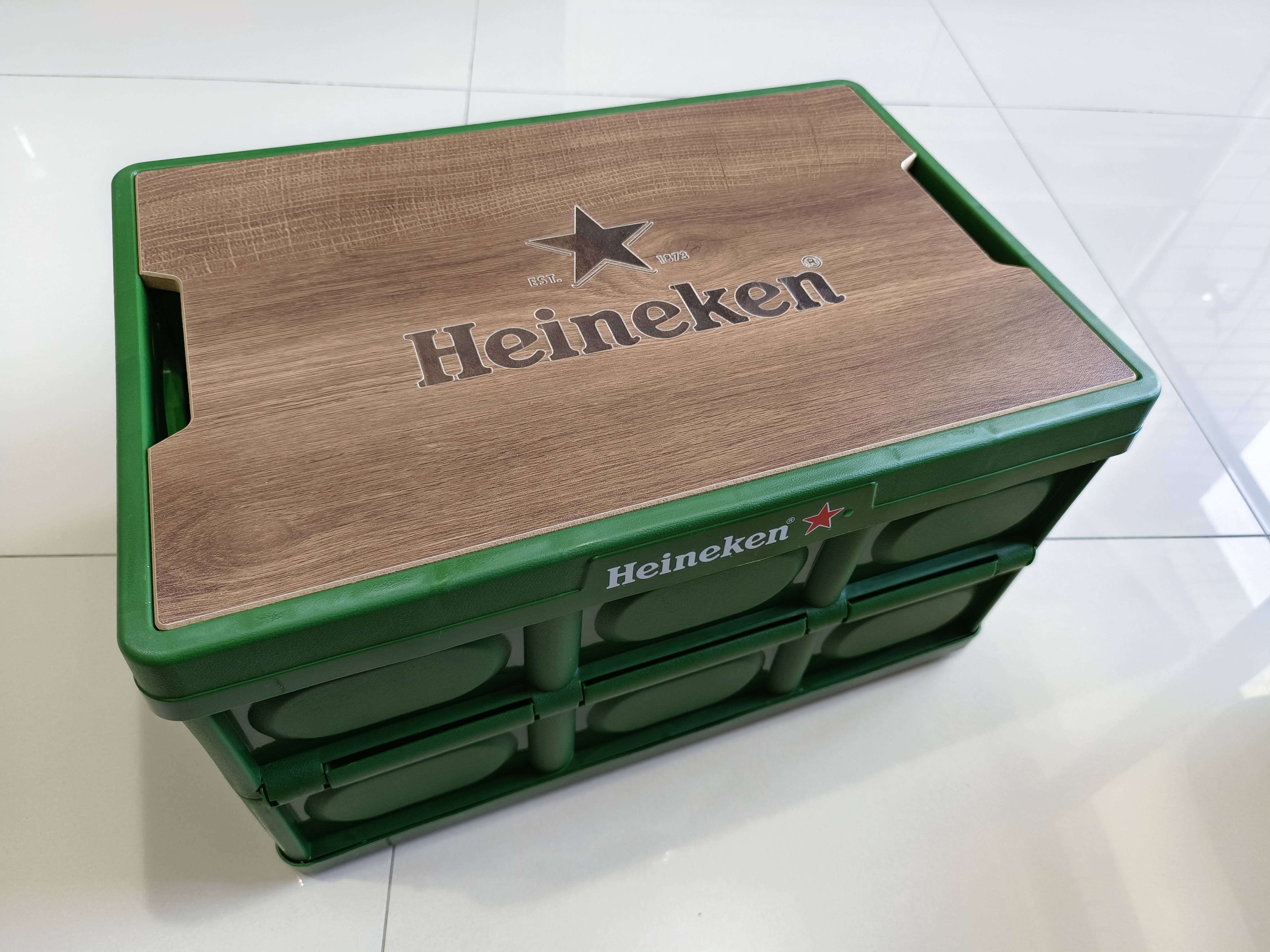 另外這款收納箱桌質感就好太多了,收納起來也很薄,正面質感很棒,木頭上LOGO還用雷雕的