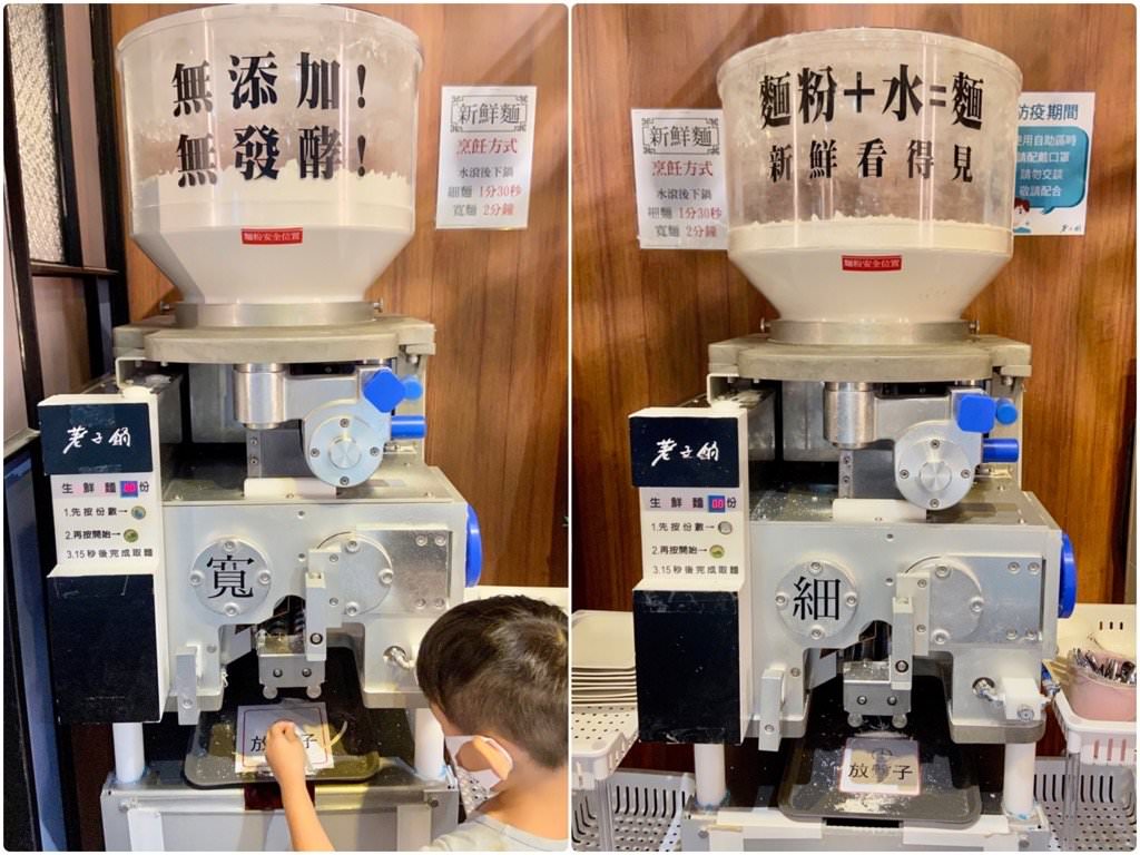 機器就會攪和水自動出麵,有分寬麵與細麵,