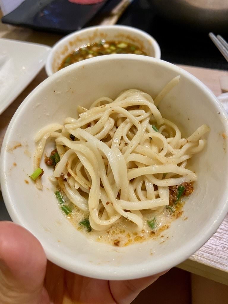 (麵本身是沒有味道,清淡口味可以吃湯頭的味道,重口味的人加醬會覺得比較好吃)