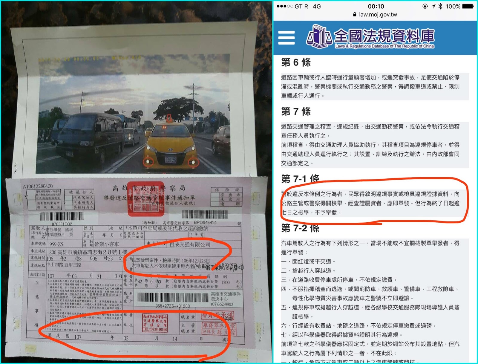 最近 LINE 收到「如果遇到檢舉罰單請注意檢舉日期跟開單日期,很多朋友都不知道這條法律,如果超過七日,去申訴罰單是可以撤銷的」這樣的謠言訊息,還貼上全國法規資料庫第 7-1 條和高雄市政府警察局開的一張紅單,寫著非雨霧天開啟了前霧燈的違規內容,事實上這個訊息說明是有誤的!