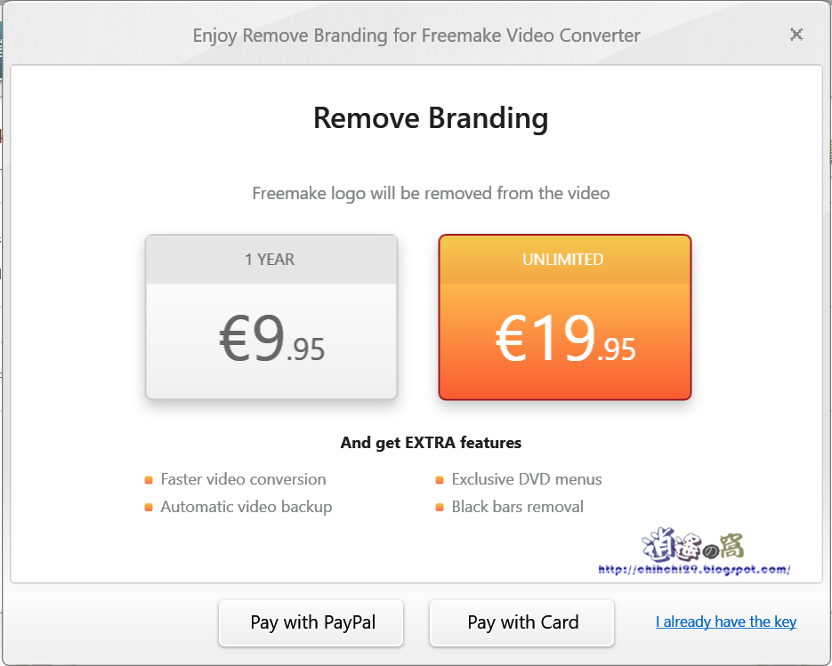 若要移除 logo 畫面或是使用「貼上URL」需要付費升級。