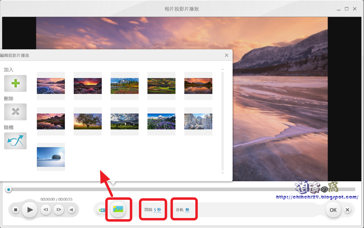 「相片」將多張照片製作成影片,可調整間隔時間,增加背景音樂。