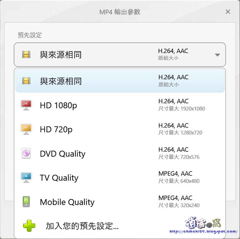 下拉選單可選擇輸出畫質。
