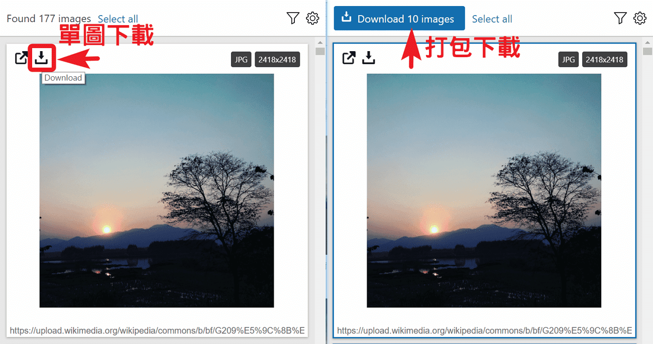 可以選擇單圖下載,或是點選圖片後點擊上方「Download」一次儲存多張圖片。