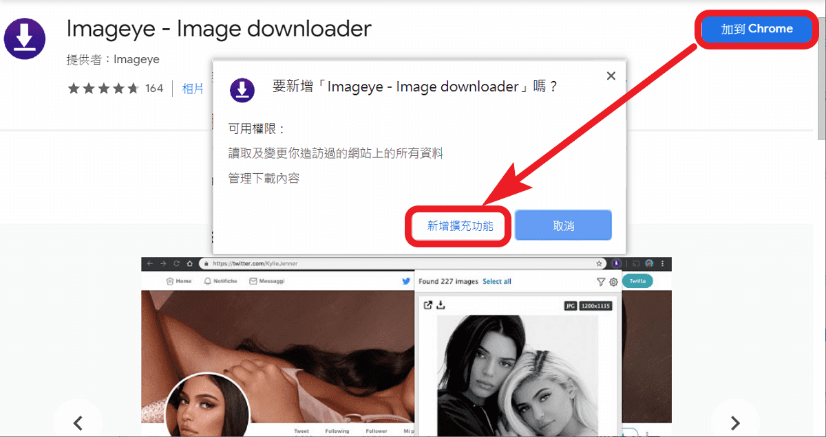 開啟線上應用程商店,按下「加到 Chrome」新增 Imageye 擴充功能。