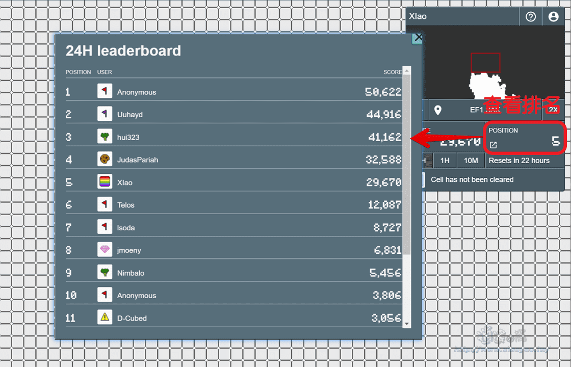 點擊「POSITION」可以查看排名,遊戲分數會每 24 小時重新計算。