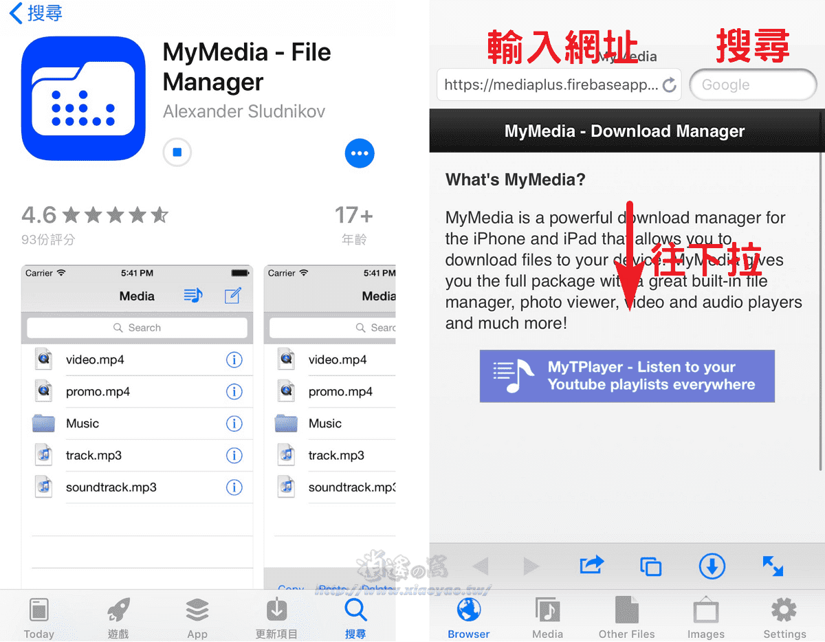 習慣使用電腦、Android 瀏覽器,剛接觸 iPhone 時會發現內建的 Safari 瀏覽器無法從網頁下載檔案。解決方法其實很簡單,在 App Store 有不少檔案管理 App 都能用來儲存網頁檔案,像是 FileGet 和本文介紹的 MyMedia - File Manager。