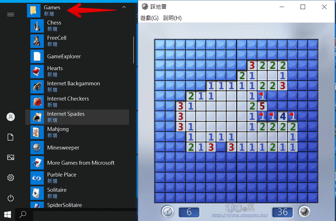 安裝完成後在「開始功能表」會有 Games 資料夾就是 Win7 遊樂場,有西洋棋、新接龍、接龍、傷心小棧、踩地雷等經典遊戲。