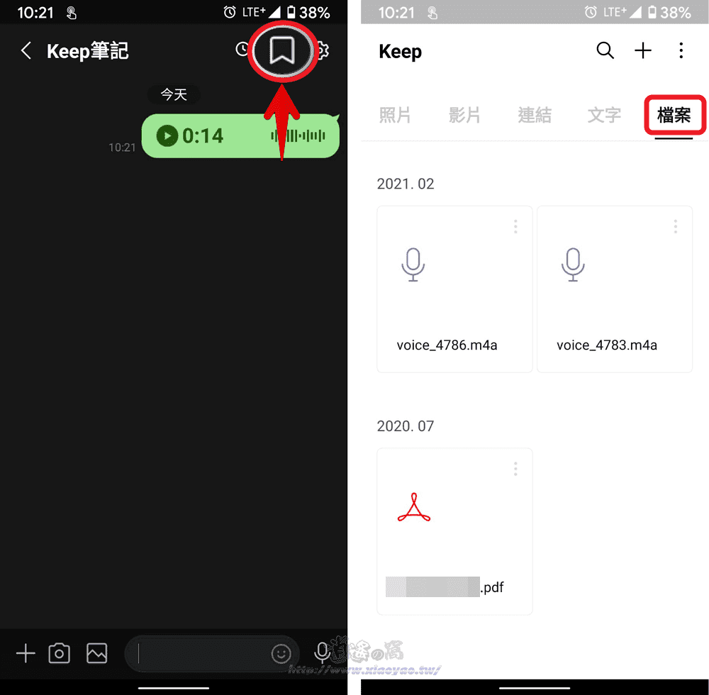 LINE 聊天室可以傳送圖片、影片以及文字、語音訊息,當需要保存重要的通訊內容時,打開圖片、影片檢視就能儲存檔案,文字訊息也能匯出純文字檔,如果想要儲存語音訊息的檔案呢?透過 Keep 空間就能將 .m4a 音訊儲存到手機。
