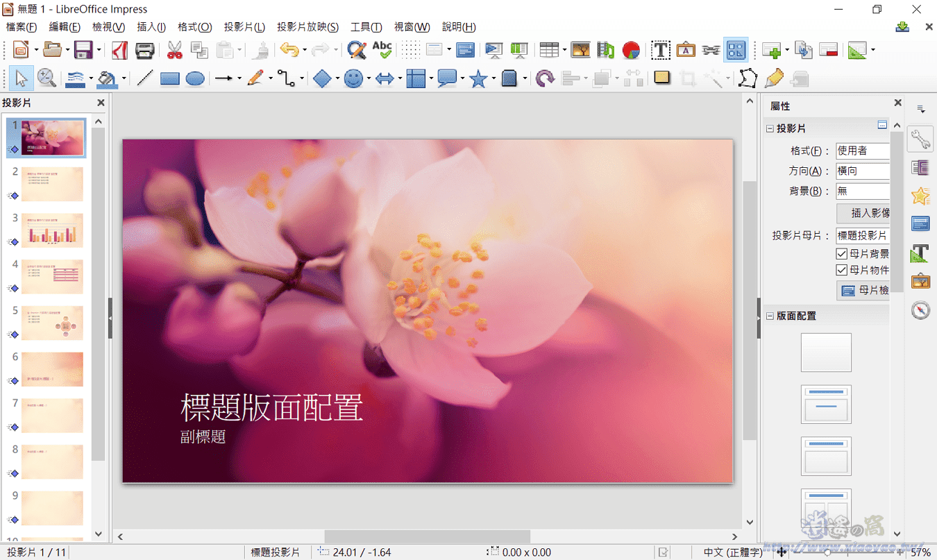 免費範本已經有佈景主題,只需要修改文字內容就完成一份文件。